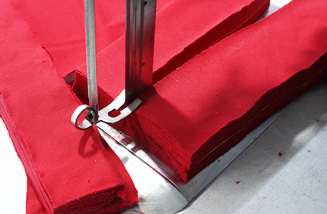With the right pattern and quality inspected fabric, cakes of fabric go through the cutting process under the supervision of seasoned craftsmen.